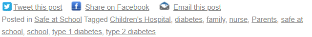 Recently, our Safe at School Director, Crystal Jackson, got the chance to chat with Fran Cogen, MD, CDE, Director of Diabetes Services and Interim Co-Chief of Pediatric Endocrinology at Children’s Hospital. Dr. Cogen’s practice serves approximately 1,800 patients in the … Continue reading